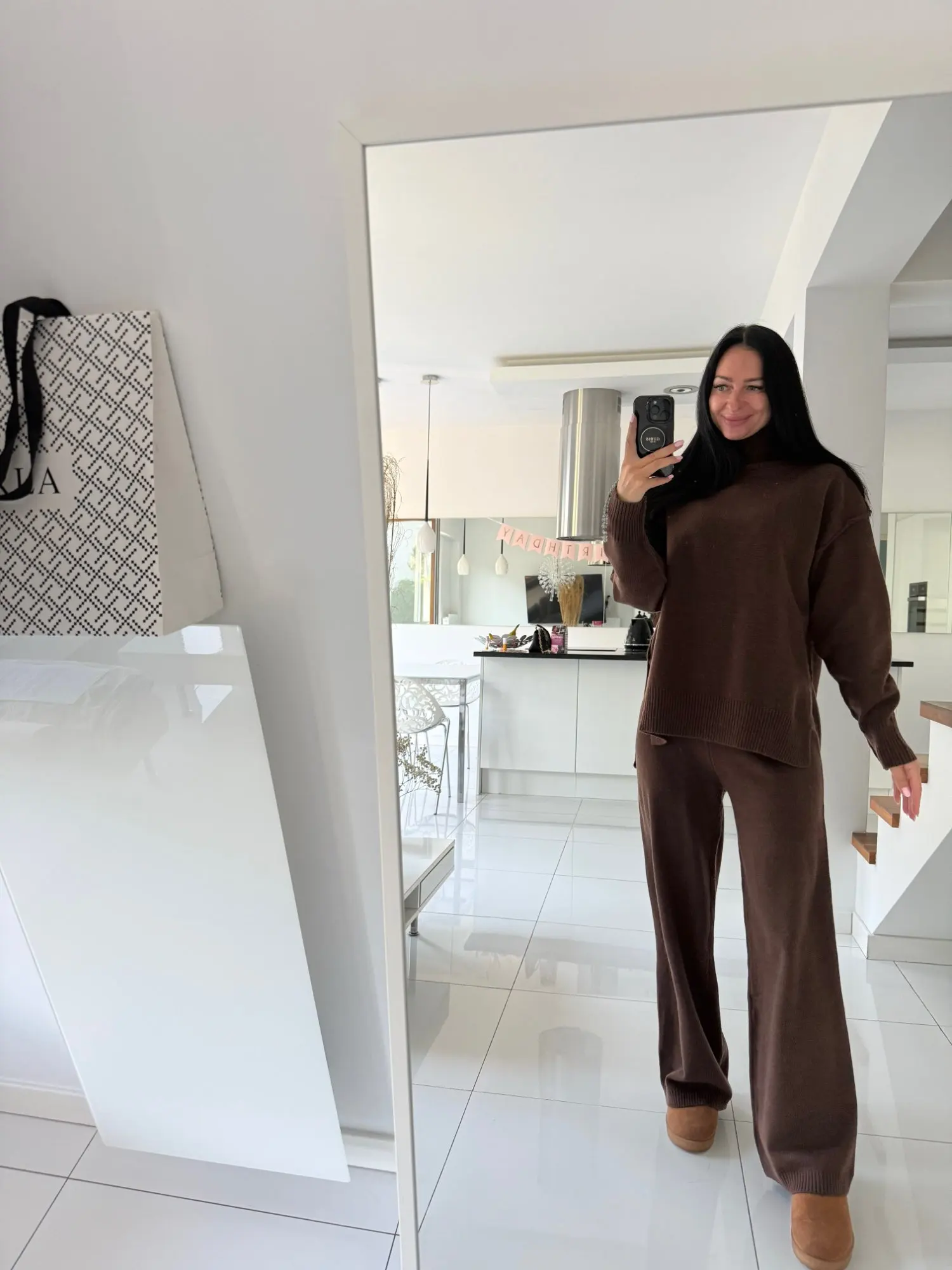 Elegant Winter Knitted Set Long Sleeve Sweater & Long Loose Pants 🤎