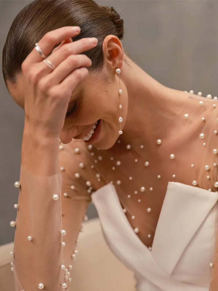 Step into timeless sophistication with our Celeste White Jumpsuit – a statement piece designed for modern women who value style and confidence. Featuring a sleek tailored fit, floor-length flare pants, and a delicate sheer pearl-detail top, this jumpsuit is perfect for evening events, galas, and unforgettable celebrations.